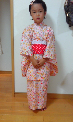 まきちゃんの長女、若葉ちゃんの浴衣を手作りで作ってほしいと御発注いただきまして^^