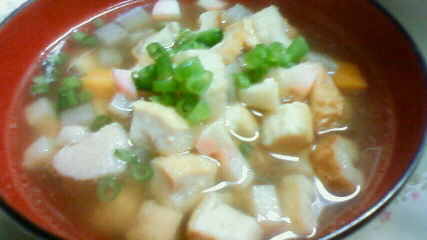 ちくわ・カマボコ・厚揚げ・鶏肉・ネギ・・。。