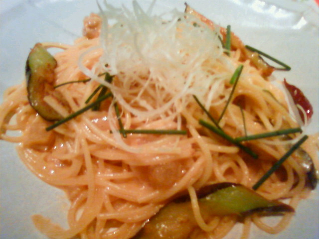 夜は『秋茄子と牛スジのカルボナーラ』食べたよo(^-^)o