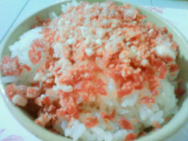 先ずは、炊き立てのアッツアツのご飯の上にパラパラと振りかけます。