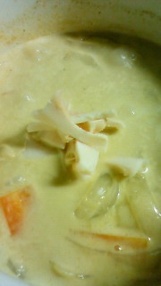 ②グリーンカレーに投入し、なんだか怖いのでしっかりめに煮込む。