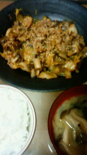 豚バラ+キムチ+なす+しめじ+まいたけo(*^▽^*)o~♪